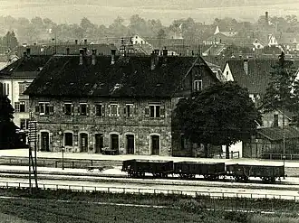 On 20 September 1859, the State Railways opened the Plochingen–Reutlingen section. The entrance building, which housed the post office in the beginning, has been preserved. The railway to Urach, with a possible continuation to Münsingen planned, was opened from a junction in Metzingen on 27 December 1873. This line was initially operated by the private Ermsthalbahn-Gesellschaft ("Erms Valley Railway Company").