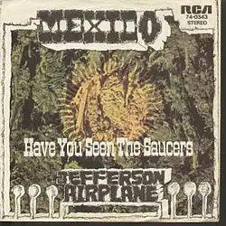 "Mexico" is a single released in May 1970 by San Francisco rock band Jefferson Airplane, produced by the band at Pacific High Recording Studios with Phill Sawyer as the recording engineer.[1] Written and sung by Grace Slick,[2] it is a tuneful rant against then-President Richard Nixon and his anti-drug initiative, Operation Intercept, that he had implemented to curtail the flow of marijuana into the United States from Mexico. The song closes with an exhortation for the young to realize the power of their numbers, as shown by the gathering of "half a million people on the lawn" at Woodstock.
