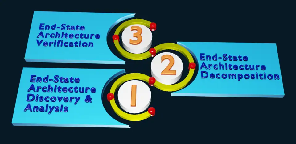 2. End-State Architecture Decomposition. The decomposition process is driven by segmenting the enterprise grand design into structural, behavioral, and volatile regions, so developers can prove that these sub-architectures would indeed work in production