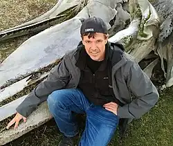 ![]() Harris with right whale skeleton in Tierra del Fuego, Argentina. | |