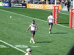 On 21 April, Jennings played for NSW City Origin in their 18–12 loss.[33] Jennings played in all 3 State of Origin games in 2013, scoring a solo try in Game 1 in the 14–6 win.[34] On 6 October, Jennings played in the 2013 NRL Grand Final at centre with the Roosters being victorious over the Manly-Warringah Sea Eagles 26–18. Jennings scored to seal the victory with a spectacular try from a James Maloney grubber, beating two Manly players with his speed to ground the ball.[35][36] Jennings was the Roosters highest tryscorer with 20 tries in 26 matches in an excellent year. After winning the premiership, he was named in the Kangaroos 24-man squad for the 2013 World Cup,[37] scoring a try in his sole appearance against Fiji.[38]