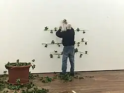 From the last show of its first year of operation, Michael Parekōwhai’s Kapa Haka, five life-sized figures posing as security guards in the gallery’s street facing window,[18] to et al.’s 2023 installation I am the Direct Source of Truth that introduced itself with a waste paper bin full of bulldog clips[19] Michael Lett has also demonstrated a strong interest in representing a wide range of work by important contemporary artists. The gallery has also shown an interest in promoting recent art history and first showed work by Jim Allen the influential teacher and artist within three years of opening.[20] Since that time Lett has regularly featured Allen who was 83 when he first performed at the gallery. The work exhibited was a re-creation by Allen of his performance piece Poetry for Chainsaws that was first shown in 1976 at the Experimental Art Foundation in Adelaide, Australia. Since then Allen performed and exhibited a mix of recreated and new works until his death in 2023.[21] More recently the work of Pauline Rhodes has also become a regular part of the Michael Lett programme.[22]