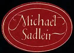 Michael Sadleir (25 December 1888 – 13 December 1957[2]), born Michael Thomas Harvey Sadler, was a British publisher, novelist, book collector, and bibliographer.
