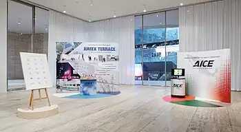 Baby Ikki has appeared internationally in performances, videos and installations in New York (Electronic Arts Intermix, MoMA), Los Angeles and Europe.[15][47][46][48][30] He was featured in a collaborative exhibition with Seth Price, "Playground" (2003, Galleria Emi Fontana, Milan), that included an installation of playground toys and video projections depicting him visiting various deserted meeting places.[30][46] In 2009, Smith collaborated with artist Mike Kelley on a multimedia installation based on Baby Ikki’s adventures at Burning Man, A Voyage of Growth and Discovery (SculptureCenter, 2009; West of Rome, 2010).[12][46] The project combined aspects of both artists' past work—dancing, dressing up, infantilism—with the festival's ethos of weeklong "radical self-expression."[46] It included an eighteen-foot Baby Ikki junk sculpture and skeletal metal playground structures designed by Kelley and projected video of Ikki at the festival, playing tetherball, dancing, and interacting amid the mass of people.[47][46]