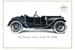 The resulting Michigan 40 was nicknamed the 'Mighty Michigan' and it was aggressively advertised with the slogan of "A Mechanically Right and Right Priced Car Supreme in the Forty Field". The $1,500 price was considered very low for a 40-hp automobile.[2]