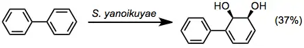 Biphenyl dioxygenase oxidizes a relatively wide array of aromatic substrates and exhibits low substrate specificity.[1] Biphenyl oxidation can also be accomplished using TDOs or NDOs.