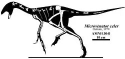 Microvenator (meaning "small hunter") is a genus of oviraptorosaurian theropod dinosaur from the Early Cretaceous Cloverly Formation in what is now south central Montana. The holotype fossil is an incomplete skeleton, most likely a juvenile with a length of 1.3 m (4.3 ft),[1] and consequently, the adult size remains uncertain.[2] Microvenator is primitive and may be the "sister taxon to all other oviraptorosaurs."[3][4]