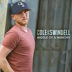 "Middle of a Memory" is a song co-written and recorded by American country music artist Cole Swindell. The song was released to radio on May 2, 2016 as the second single to his second studio album You Should Be Here. The song was written by Swindell, Zach Crowell and Ashley Gorley.[1] It received positive reviews from critics praising Swindell's improvements as a storyteller. "Middle of a Memory" peaked at number one on the Billboard Country Airplay chart, giving Swindell his fifth number-one country hit overall. It also reached numbers three and 46 on both the Hot Country Songs and Hot 100 charts respectively. It was certified Platinum by the Recording Industry Association of America (RIAA), and has sold 365,000 copies as of January 2017. The song also charted in Canada, reaching number 33 on the Canada Country chart and number 98 on the Canadian Hot 100 chart. The accompanying music video for the song was directed by Michael Monaco.