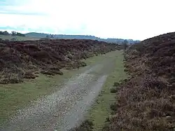 Initially the railway served clay pits to the east side of the road from Wareham to Corfe Castle, but shortly thereafter it was extended under the road to serve clay workings on the other side of the road. There are two tunnels under the road, serving different workings. The northern tunnel carries a plaque on its east face reading BF 1807. The southern tunnel has a plaque on its west face Dated in 1848, but as the tunnel is shown on earlier tithe maps, that is believed to be a rebuilding date. Workshops and a weighbridge were built near New Line Farm to the east of the road and weathering beds were also located here; these were dumps of newly dug clay which had to weather for up to a year to allow the clay to break down to make it workable.[1][2]