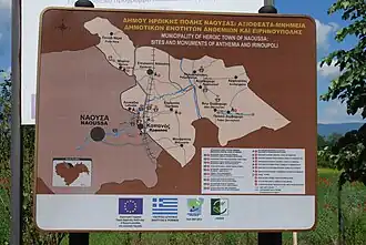 ![]() Sign displaying map of the Lefkadia-Kopanos-Naoussa archaeological complex. | |