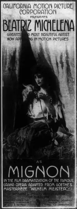 Mignon is a 1915 American silent drama film directed by William Nigh with production supervised by Alexander E. Beyfuss. It is based on the 1866 opera Mignon that was from the 1795-96 novel Wilhelm Meisters Lehrjahre by Johann Wolfgang von Goethe.[1]