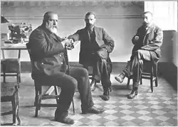 In 1906 Junyent represented Traditionalists in talks with other Catalan political groupings when mounting a common front against Ley de Jurisdicciones, a newly adopted regulation which placed perceived offences against the army and state under the military jurisdiction; in Catalonia it was widely perceived as assault on the region and its identity.[49] He emerged as one of the leaders of the movement, and together with Francesc Cambó Junyent was entrusted with a mission of travelling to Madrid and coordinating action with dissenting parliamentarians.[50] Later that year the Catalan opposition took shape of Solidaritat Catalana, a block of local parties opposed to the Ley; within his party Junyent was lobbying for taking part in the coalition[51] and was the only Carlist who signed the document which founded the alliance.[52] Together with Cambó and José Roca y Roca he also entered the informal triumvirate which ran Solidaritat[53] and entered its Comité Executiu, later together with Solferino co-signing on part of the Carlists.[54]
