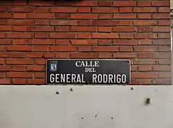 Between 1968 and 2017, Calle del General Rodrigo, a street in Madrid running between Calle de Julián Romea and Avenida de la Reina Victoria, was named after him.[17][n. 2]