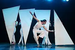 MIHR Theatre has created its own way of dance choreography titled "Music of Movement". This is a unique technique combining music and dance, and at the same time it is based on a dancer who is creating music via movements. The instruments for "Music of Movement" were designed and created by MIHR Theatre for this special project.[8]