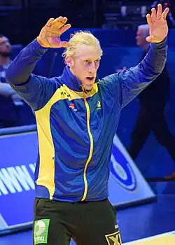 He competed at the 2016 European Men's Handball Championship.[13] Here he acted as a backup for Mattias Andersson. He also represented Sweden at the 2017 World Championship together with Andreas Palicka.[14]