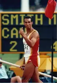 In 1992 at Barcelona, Spain, Smith was the opening ceremonies flag bearer for Canada at the Olympics. Unfortunately during the decathlon Smith pulled a hamstring and was forced to withdraw on the first day of the two-day competition. In 1994, he won gold at the Commonwealth Games for the second time.