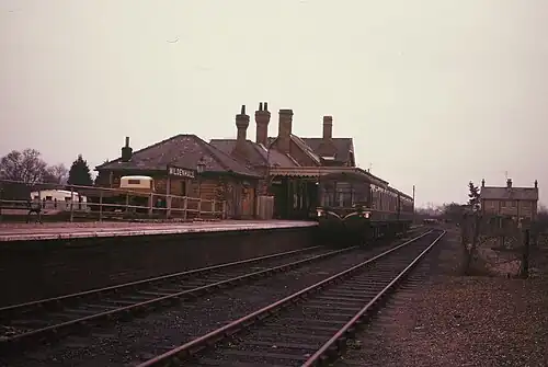 Mildenhall railway station is a disused railway station that was the terminus of the closed Cambridge to Mildenhall railway. It served the market town of Mildenhall, Suffolk, and closed for passengers in 1962.[2] The station building is now a private residence and the goods shed to the west of the station has been used by local businesses for storage and other purposes.