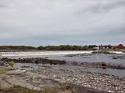 The Milford Dam is a dam on the Penobscot River between Old Town and Milford in Penobscot County, Maine. The dam received a new fish lift as a part of an extensive project involving four dams to restore eleven species of sea-run fish to the Penobscot River. The Great Works Dam was removed in 2012 and was just downstream of the Milford Dam.[2][3][4] The dam's power plant has an 8 MW installed capacity.[5]