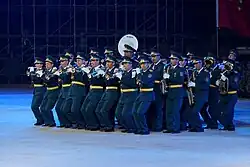 The Presidential Band is a ceremonial unit that operates under the auspices of the State Security Service of Kazakhstan. It performs for all state functions, especially those concerning the President of Kazakhstan. From 1992 to 2014, it was known as the Band of the Republican Guard. It is known in part due to its turquoise and white full dress uniforms.[6]