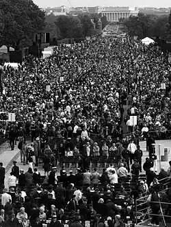 In the early 1980s, women veterans began pressing for a memorial to women in the U.S. armed services. They won the formal support of the American Veterans Committee (AVC), a liberal veterans' group, in 1982.[54] Representative Mary Rose Oakar, chair of the Subcommittee on Library and Memorials of the Committee on House Administration, introduced legislation (H.R. 4378) to establish a memorial. However, Secretary of the Interior Donald P. Hodel and the National Park Service both opposed the legislation, arguing that the existing Vietnam Women's Memorial and the planned United States Navy Memorial already incorporated and honored women. Despite this opposition, the legislation passed the House of Representatives in November 1985.[55] In March 1986, the Subcommittee on Public Lands of the Senate Energy and Natural Resources Committee tabled identical legislation introduced by Senator Frank Murkowski. Committee chair Malcolm Wallop was concerned that too many memorials and monuments were being placed on the National Mall and wanted a statutory scheme that contained approval criteria enacted first.[56] But United States Air Force Brigadier General Wilma Vaught argued that a statue or monument was not enough; what was needed was a memorial with exhibits about the contributions of women in the armed forces.[57] Subsequently, in late 1985 the AVC established the Women In Military Service For America Memorial Foundation to raise funds and lobby Congress for a memorial.[50][58]