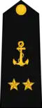 | Almirante | Almirante de esquadra | Vice-almirante | Contra-almirante | Capitão de mar e guerra | Capitão de fragata | Capitão de corveta | Capitão-tenente | Primeiro-tenente | Segundo-tenente | |||||||||||||||