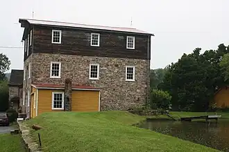 This historic complex consists of a three-story, stone-and-frame, banked mill with corrugated steel gable roof (1887), a 2+1⁄2-story, stone-and-frame, farmhouse (c. 1745), a 2+1⁄2-story, stone settler's cabin that dates to the eighteenth century, a one-story, frame, summer kitchen, a one-story, frame, ice house, a one-story, frame, wagon shed, a two-story, stone-and-frame barn (1814), a one seat privy, a stone-and-frame pig sty, and the millraces and pond. The mill ceased operation in 1965. The custom mill was built as part of a working farm.[2]