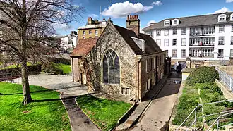 Milton Chantry is the oldest building in the Borough of Gravesham, in the former parish of Milton. It was built in 1322 by Aymer de Valence the Earl of Pembroke as a chantry chapel.[2] Milton Chantry is all that remains of the Hospital of St. Mary the Virgin leper hospital.[1][3] The purpose of a chantry chapel was to say prayers for the souls of the dead.[4] Many wealthy people built chantry chapels and gave them land to generate an income, in order to maintain a priest to pray for the owner and his family.[2]