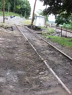 It continued to grow in the early half of the 19th century, becoming a regular steamboat port and the eastern end of the Farmer's Turnpike, which extended out to the foot of the Shawangunk Ridge in Gardiner, New York. A wheelbarrow factory at the site did a steady business. These interests resisted at first when the West Shore Railroad began acquiring property for their attempt to compete with the New York Central Railroad's (NYC) Water Level Route across the river. Their litigation was dismissed in 1882, and the station opened the next year.[1]