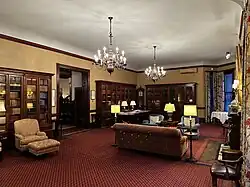 The Milwaukee Club building has numerous dining rooms for members, including a main dining room, as well as 10 private dining rooms that can accommodate between two and 60 guests at a time.[5] In 1910, Lydia Van Dyke Payne donated her late husband Henry's book collection to the club, and an estimated 2,000 volumes were gifted to the club's library, today known as the Henry C. Payne Library.[6]