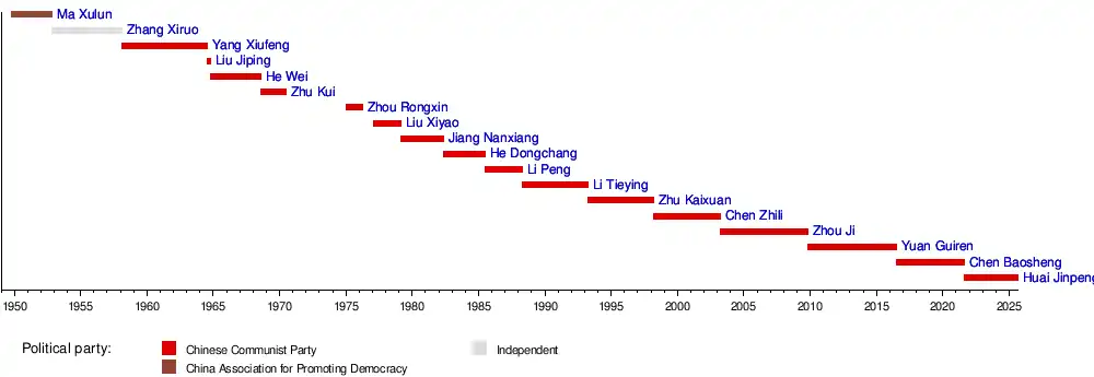 20 August 2021 | Incumbent | 3 years, 362 days | Secretary of the Party Leadership Group of the Ministry of Education | Li Keqiang ↓ Li Qiang |