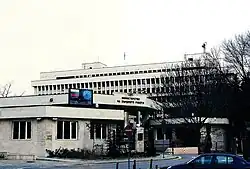Since 1983 the Ministry of Foreign Affairs has been based in a purpose-built edifice in the district of Slatina east of the Sofia city center, situated at 2 Alexander Zhendov Str. It lies just northeast of the city's largest boulevard Tsarigradsko shose and its oldest park Borisova gradina. The competition for the building design was held in 1970 and was awarded to the Sofproekt architect bureau under the architects Bogdan Tomalevski and Lozan Lozanov.[7] The planning and design phase took until 1974–1975. Construction began in 1975 and continued until 1983.[7][8]