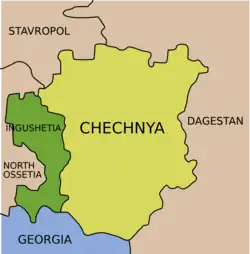 | Map of Министерство внутренних дел по Республике Ингуше́тия's jurisdiction | |