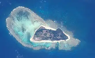 Minnajima is part of the Miyako Islands and is 8 km north of Tarama Island. The island is surrounded by an atoll, primarily spreading to the west, with the East China Sea to the north and the Pacific Ocean to the south.[2]