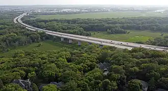 Long Meadow Lake is spanned by a wood and steel bridge built in 1920. Known as the Old Cedar Avenue Bridge, it was turned over to the city of Bloomington in 1979 when the Minnesota Department of Transportation constructed a new bridge nearby. In poor repair, the old bridge was closed to vehicular traffic in 1993 but remained a crucial link for pedestrians and cyclists until officials closed the bridge entirely in 2002. The refuge managers, Bloomington and Eagan officials, and public interest groups have all expressed a desire to replace or restore the unsafe bridge. Construction began in May 2015 and should be completed during the fall of 2016.
