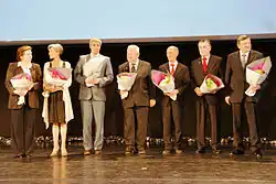 Hermaszewski was set to try his hand at politics once more as a candidate for the European Parliament, again from the SLD party, in the 2014 elections. Ultimately he decided not to take part, as his son-in-law was also running for office but via an opposing political party.[29] In 2018, the conservative ruling Law and Justice party of Poland—mirroring similar efforts from 2007[30]—tried to vote through a law that would collectively demote all former members of the aforementioned WRON from the early 1980s to the lowest rank of private, including Hermaszewski. The so-called "degradation act" was met with controversy in Polish and foreign media primarily due to the case of Hermaszewski, who was initially included as a member of the WRON without his consent or knowledge.[31][32][33] In the end, the proposed law was vetoed by President Andrzej Duda, who used Hermaszewski's case as one of the reasons why the "degradation act" needs to be rewritten.[34]