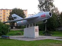 - Similarly to the one in Wołów, one of the fighter jets that Hermaszewski flew on is used as a monument in Miastko. It was gifted to the town by the cosmonaut in 1989 and unveiled on the 50th anniversary of the outbreak of World War II; the text on its plaque reads: "To the glory of Polish wings on the 50th anniversary of the outbreak of the Second World War – citizens of Miastko".[55]