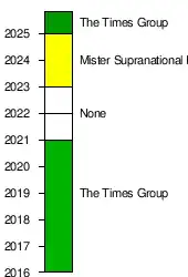 In 2024, The Times Group regained the license to select India's future representatives, starting with the 2025 edition of Mister Supranational.[7][8]