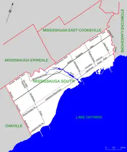 Mississauga—Lakeshore (formerly Mississauga South) is a federal electoral district in Peel Region, Ontario, Canada. It has been represented in the House of Commons of Canada since 1979.