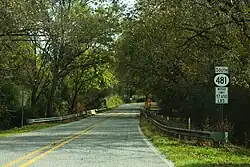 North of the interchange, MS 481 turns to the northwest. At the Morton city limits, the road name changes to Fifth Street, state maintenance ends, and city maintenance continues for the next 0.8 miles (1.3 km).[4][3] This portion of the highway is signed "To MS 481" with shields and "Hwy 481 S" on street signs. Houses surround the highway inside the city limits. The road curves to due north where business begin to line the road. At a signalized intersection with U.S. Route 80 (US 80), MS 481 heads west along it forming a concurrency. At this point, the highway is two lanes, but includes a center turn lane. Less than one mile (1.6 km) later, US 80/MS 481 reach a four-way stop-controlled intersection with MS 13. MS 481 turns north along MS 13, a four-lane divided highway, first crossing a railroad at-grade before narrowing to a two-lane road. At the next intersection, MS 481 breaks off the MS 13 concurrency to head northwest along a two-lane road. Curving to the north, MS 481 reaches a clearing where farm fields surround the road. The state highway formally exits the national forest before curving to the west at the community of Branch. Crossing into Rankin County, MS 481 passes through Leesburg. Later, at the settlement of West Leesburg, also known as Billbros Corner, MS 481 reaches its end at MS 43.[3]