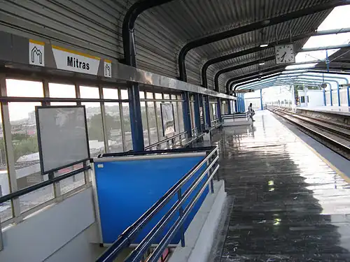 Mitras Station (Spanish: Estación Mitras) is a station on Line 1 of the Monterrey Metro in Monterrey, Mexico. It is located in the intersection of Simón Bolívar and Ruiz Cortinez Avenues. This station is located in the Colon Avenue in the northeast side of the Monterrey Centre. The station was opened on 25 April 1991 as part of the inaugural section of Line 1, going from San Bernabé to Exposición.[1]