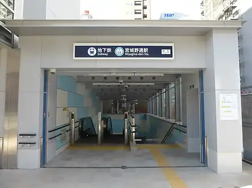 Miyagino-dori Station (宮城野通駅, Miyagino-dōri-eki) is a subway station on the Sendai Subway Tozai Line in Miyagino-ku, Sendai, Japan, operated by the municipal subway operator Sendai City Transportation Bureau.