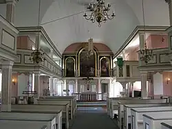 Mo Church (Norwegian: Mo kirke) is a parish church of the Church of Norway in Rana Municipality in Nordland county, Norway. It is located in the town of Mo i Rana. It is the church for the Mo parish which is part of the Indre Helgeland prosti (deanery) in the Diocese of Sør-Hålogaland. The white, cruciform, wooden church was built in a neo-Gothic style in 1724 using plans drawn up by the architects Andreas Grenstad and Espen Poulson. The church seats about 400 people.[1][2][3]