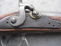 This was the U.S. M1814 rifle designed by Robert T. Wickham.[1] Two manufacturers made this type, Henry Deringer of Philadelphia and R. Johnston of Connecticut.[1] Wickham sent the pattern to Deringer with a contract for 1000 rifles. One of Deringer's rifles was then sent to R. Johnson to be duplicated, with a contract for 1000 more. It was mounted with iron and had an oval patch box. It had a 33-inch barrel, octagon near the flintlock, turning to round, and using a .54 caliber bullet.[1]