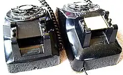 The 5300 and 5400 series of telephones consisted of the 300-series and the 400-series models converted to approach the appearance and performance of the model 500.[1] This was accomplished with a new housing, new number ring and dial plate, and a ringer volume control that could be adjusted by users. The model numbering for these sets was derived from the converted 300 or 400 series units by prefixing those model numbers with the digit 5. In addition to the model 5302, the series also consisted of the specialty models 5304, 5306, and 5410 telephone sets.