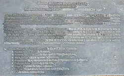 On 10 May 2019, a statue of Testas was unveiled in Bordeaux, which was created by the Haitian sculptor Woodly Caymitte.[9][10] The bronze statue is 1.7m high and was made at the Fonderie des Cyclopes, and is located on the banks of the Garonne, Quai Louis XVIII.[11] It is a figurative sculpture and is notable as a representation of the body of an enslaved woman.[12] An explanatory plaque on the ground evokes the story of Modeste Testas.[7] On 13 September 2021, the statue was vandalized with white paint.[13]