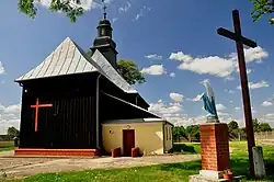 In the village there is a historic wooden church of St. Stanislaus Bishop and Martyr, from 1591. There is also a Roman Catholic cemetery.