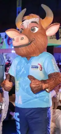 Moga[a] (transl. Love) was the official mascot for the 2023 National Games of India, which were held in Goa from October to November. Representing the spirit of determination and perseverance, Moga was depicted as an emblematic representation of an Indian bison, symbolizing a set of attributes that include resilience and the ability to surmount obstacles. The mascot served as an embodiment of the commitment exhibited by athletes in their pursuit of excellence within their chosen sporting disciplines.[1]