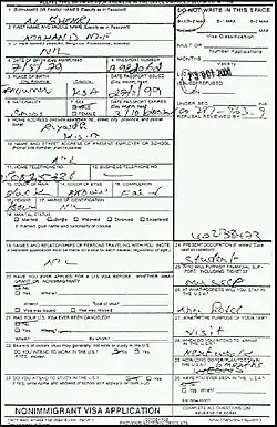 According to Arab News, Mohand al-Shehri went to fight in Chechnya in early 2000, where he may have met Hamza al-Ghamdi. On October 23, al-Shehri applied for a US B-1/B-2 visa in Jeddah. Other than an error on his school's address the application was not suspicious and he was not interviewed before being granted the visa.[1]