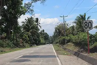 The entire highway is designated as National Route 80 (N80) of the Philippine highway network.