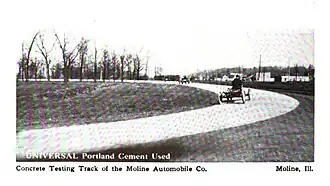 In 1909 the Model S became the Model M with a 4-cylinder 35-hp engine and would be offered into 1914. The model M as a touring car was introduced at $1,500, equivalent to $52,494 in 2024.[1] The larger 40-hp Model K participated in the 1909 and 1910 Glidden Tours. The Moline team in the 1909 Glidden Tour received the Hower (Chicago) trophy.[7][1] In 1910 R & V made improvements in their automobile plant with heated concrete floors and a new concrete paved testing track.[8]